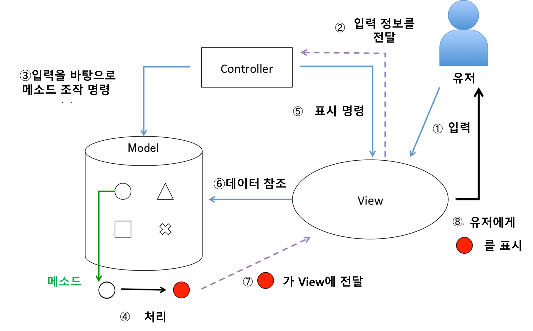 유저가 어떤 것을 입력했을 경우의 처리 흐름에 대해서 살펴보면 MVC모델에 대해 더욱 잘 이해가 될 것이다.