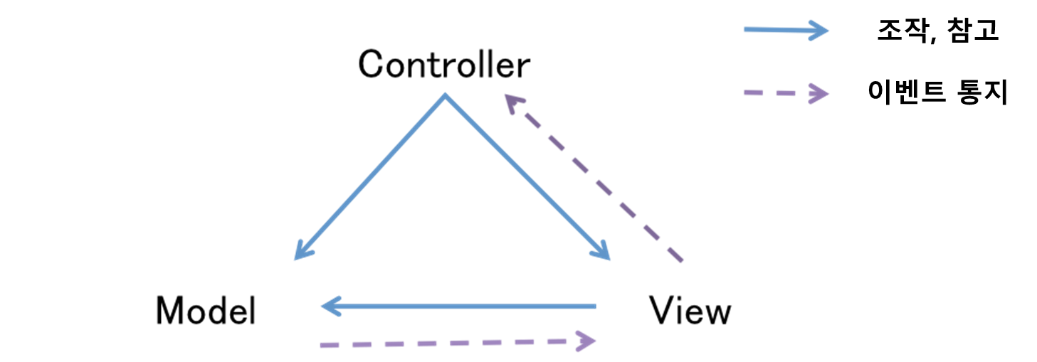 - Controller : 유저의 입력을 바탕으로 Model과 View를 제약한다.